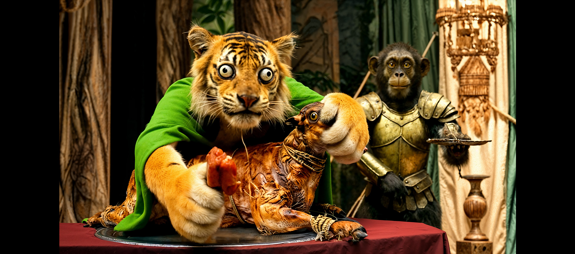 This is portrayed through the use of taxidermy animals in a silent play about the greed where governments clash and the innocent, like sheep are the victims. It's a metaphorical attempt to reach those who have died on the inside, whose souls have been silenced, and who now serve as puppets in the machinery of evil. After brainstorming the concept, we explore the art style using AI image generators like MidJourney and ChatGP mixing visuals until we land on a final character design. Then, using natural language, we describe what we need to ChatGPT, which helps us craft precise prompts for Runway ML. Runway's tools allow us to generate reference images for characters and locations, set up scenes, and finally animate them using image to video.