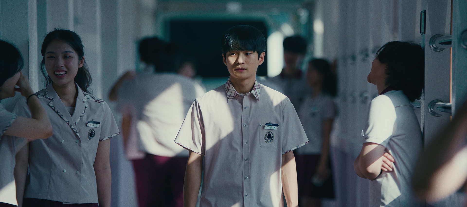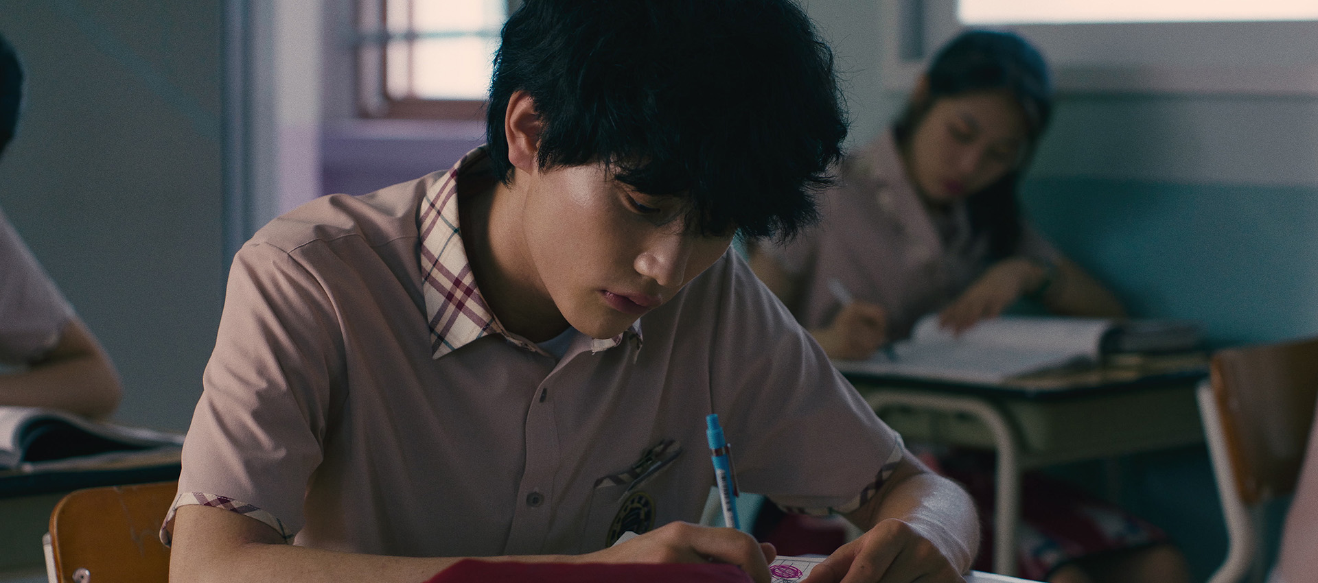 Director Seo Eun-young's fourth feature following Overman (2016), Go back (2021), and Ditto (2022). The film starts with a question surrounding Hae-sung, the boy who died and the main culprit of the bombing. Classroom Delusions "why would he do such a thing?" Hae-sung did not turn away from the weak, but he was far from an apostle of justice. He was a friendly child to someone, but he was strangely didn't blend in with anyone. Teacher Jaegon and lawyer Yeojin gather fragmented testimony by searching for people around Hae-sung, but attempts to define the character Haesung are constantly blocked by a wall and do not converge to a single answer. Eventually, a boy who liked quizzes becomes a problem that will remain an eternal mystery. Instead of investigating the cause and effect of the incident, Classroom Delusions focuses on exploring why the explanation is impossible. This journey soon reveals the emptiness and deficiency of the community, the incompetence and ignorance of adults, and the reproductive structure of violence. The camera often zooms out, illuminating the characters like beings in isolated tanks. What should they do to get out of the tank? The movie asks how those left behind in a world of mixed violence and chaos can listen to each other's voices. (CHA Hanbi)